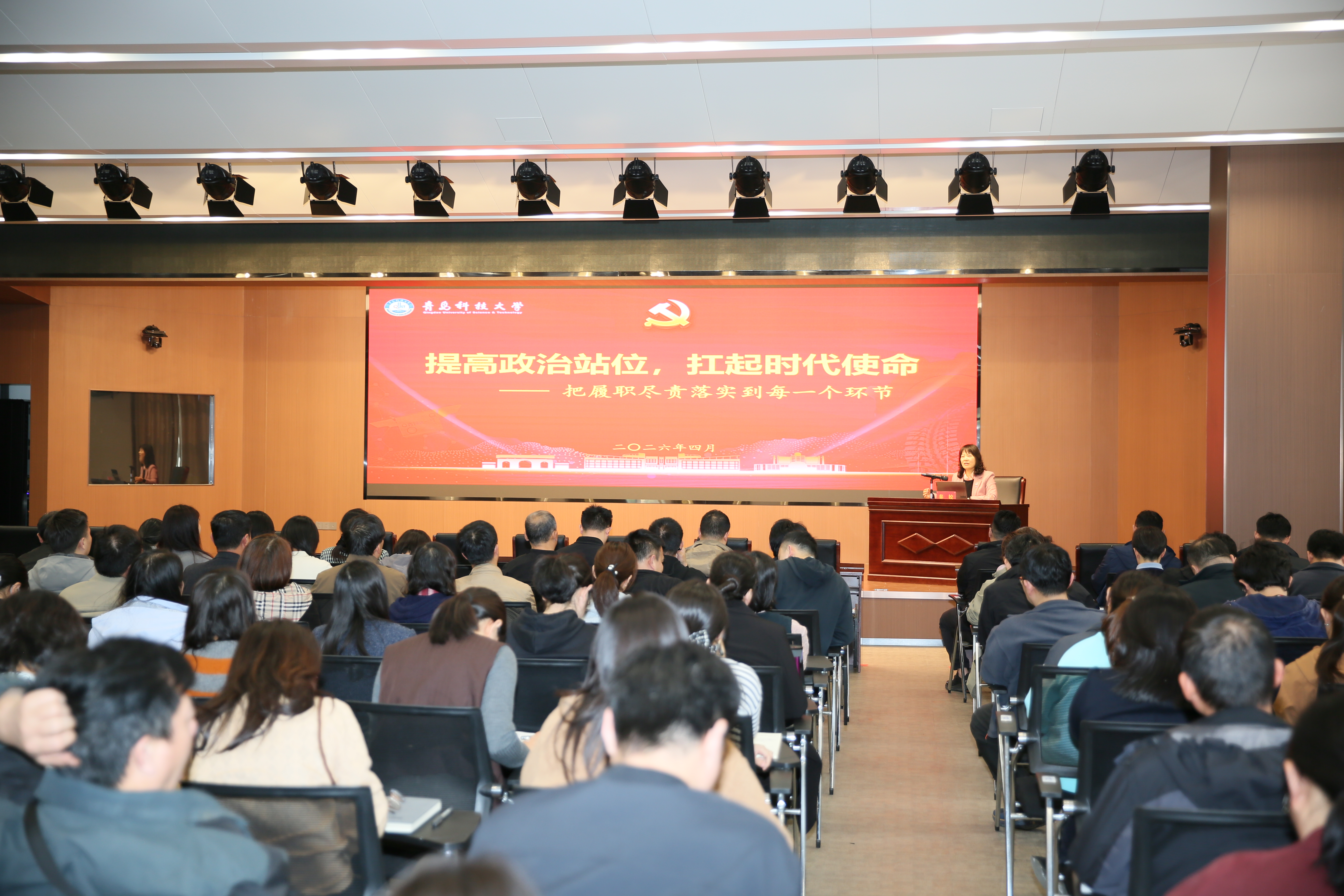 党委常委、统战部部长兼机关党委书记秦姣作题为《提高政治站位,扛起时代使命——把履职尽责落实到每一个环节》的专题辅导报告。报告紧扣机关管理服务职能与立德树人根本任务,围绕树立和践行正确政绩观、抓实高校统战工作、强化风险防范意识等内容进行系统阐释与精准辅导,同时从提高政治站位、强化法治意识、压实工作责任、锤炼过硬作风四个方面,对机关工作提出明确具体要求,为机关干部提升政治素养、强化履职能力、服务学校高质量发展提供了清晰方向与行动指引。